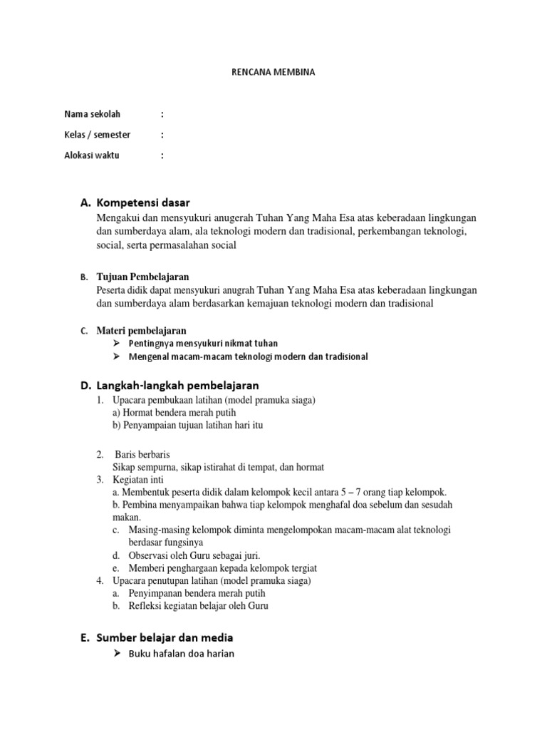 Rpp Pramuka Penegak Doc Masnurul from 4.bp.blogspot.com Membina siaga adalah menyiapkan pramuka sejak dini menjadi manusia yang berwatak, berkepribadian dan berbudi pekerti luhur. Salah seroang pembina pramuka di telkuk bel;engkong kwarrab indagiri hilir kak zainudin mengirimkan rencana pelaksanaan pembinaan ( rpp) di gudepnya. Membina adik didik dalam pramuka. Rencana melatih (rm) kmd materi latih cara membina pramuka dengan sistem among. Rencana kegiatan pembelajaran pramuka (rkpp) | pustaka pandani. Dapat mengetahui manfaat kompas (siaga) dapat menjelaskan kompas, menaksir tinggi dan lebar (penggalang) Dengan harapan bisa diubah suai atau dikembangkan bagi pembina lai. Dan guru aktif, siswa mendominasi peran, dan mementingkan keterpaduan (pengetahuan, sikap, dan penerapan).