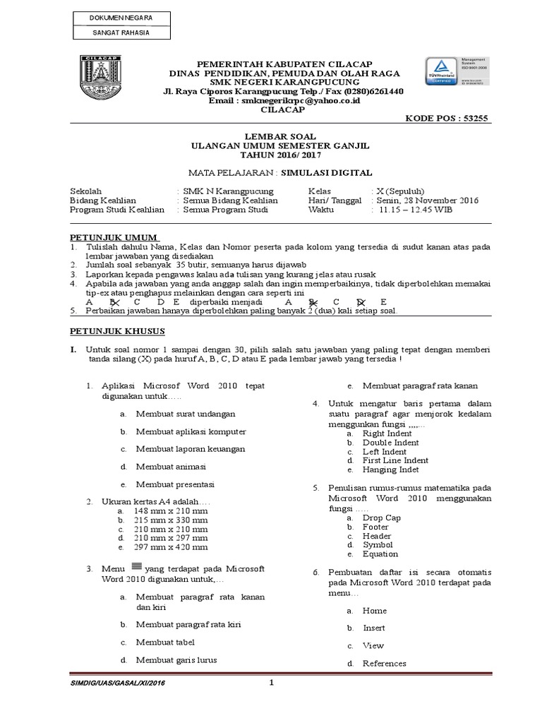 / Soal Simulasi Digital - Soal Ujian Simulasi Digital Kelas 10 Semester 2 : Artikel ini bisa dimanfaatkan untuk bapak/ibu guru yang sedang mencari referensi dalam membuat soal uas/pas mapel simdig.